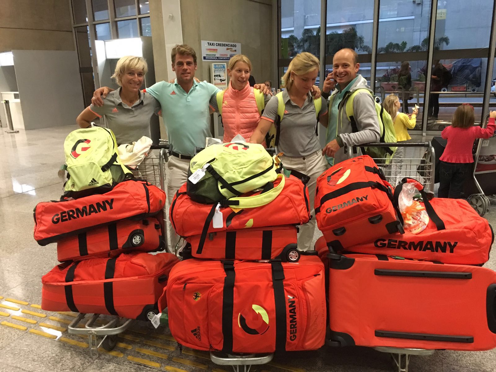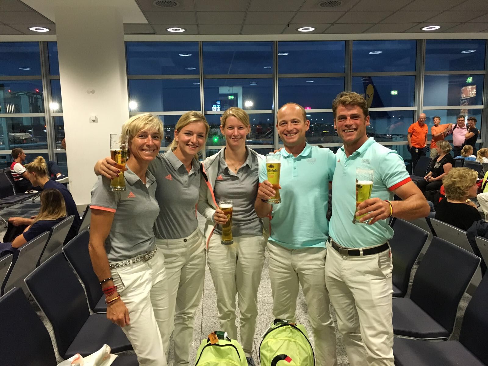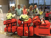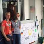Bärbel ist bereits mit den anderen Pflegern am Freitag geflogen, um alles für Wolle's Ankunft vorzubereiten. Da pro Nation nur eine Begleitperson mit den Pferden fliegen darf, wurde entschieden, dass Ingrid's Pflegerin Carmen dies übernimmt, da sie bereits viel Erfahrung mit Flugbetreuung von Pferden hat - vielen Dank Carmen, dass du dich so gut um Wolle gekümmert hast. :-) Ich bin dann gemeinsam mit dem Rest des Teams am Samstagabend in Frankfurt los geflogen.
