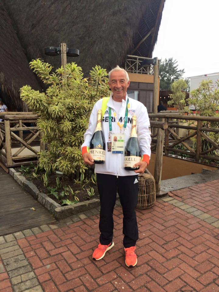 Nach der Siegerehrung ging dann der "Stress" erst richtig los: Rein in die Trainingsanzüge und ab ins Sportstudio. Vom Sportstudio ging es dann ins Deutsche Haus, wo wir als erste deutsche Medaillengewinner ordentlich gefeiert wurden. Wir selbst haben natürlich auch ausgiebig gefeiert. Nach dem Auf und Ab war die Silbermedaille wirklich eine Erleichterung. Dank der positiven Einstellung von Chris, sind wir einfach in unserer eigenen "Bubble" (wie Chris sagt) geblieben und haben unser Ziel "die Mannschaftsmedaille" nie aus den Augen verloren.