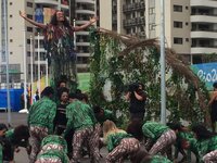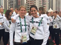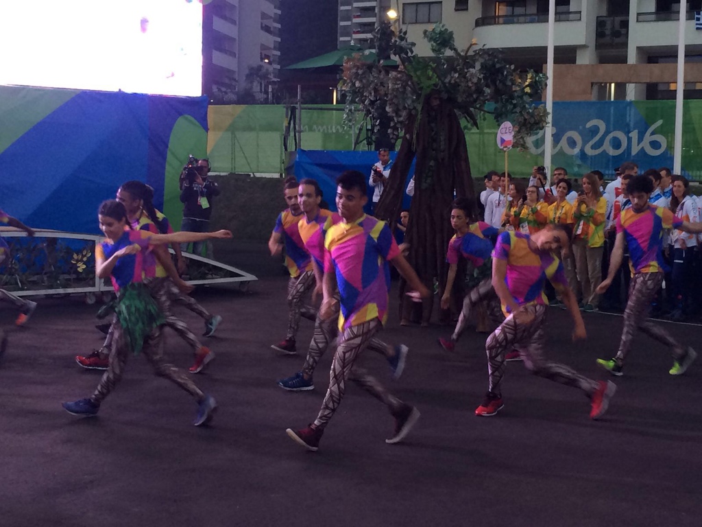 Nachmittags hat dann die Willkommenszeremonie im Olympischen Dorf stattgefunden. Dabei übergibt jede Nation ein kleines Geschenk an den Veranstalter und wird mit der eigenen Nationalhymne willkommen geheißen. Es wurden außerdem tolle Showeinlagen vorgeführt. Am Abend waren wir dann noch mit dem deutschen Dressurteam im brasilianischen Steakhouse essen.